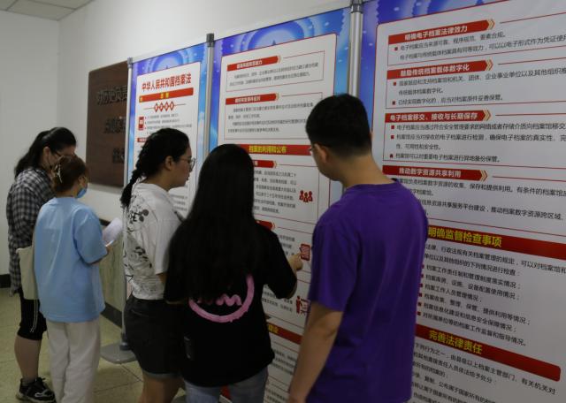 档案馆精心设计系列宣传展板详细介绍了新修订《档案法》内容,放置于档案馆长廊中,使来馆师生首先映入眼帘,在“国际档案日”、档案开放日及日常查档咨询时,吸引师生驻足观看,档案员们则不失时机地上前讲解《档案法》和宣传档案工作的重要性,通过日常强化加深印象,普及档案知识,提高师生档案利用和法治意识。