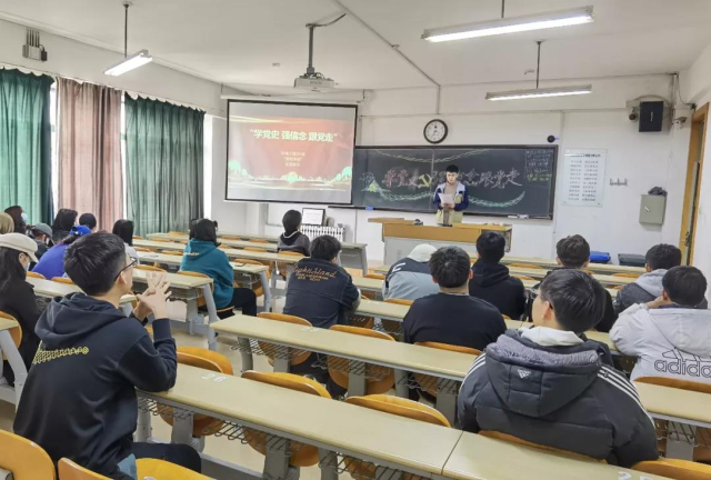 为扎实做好大学生思想政治教育工作,积极构建“大思政课”育人格局,发挥主题班会在中华民族共同体意识实践教育体系中重要作用,及时解决学生思想上存在的问题和困惑,以铸牢中华民族共同体意识为主线,以庆祝中国共产党成立100周年为契机,引导广大学生从党的百年伟大奋斗历程中汲取继续前进的智慧和力量,弘扬以爱国主义为核心的民族精神和以改革创新为核心的时代精神,发扬“脱贫攻坚”精神,坚定社会主义信念,使各民族大学生始终保持积极进取的人生态度、昂扬向上的精神状态。在本次班会中,班长召集学生们奏唱国歌,并介绍班会目的和意义,团支书、心理委员、与多名同学上台演讲让同学们了解党的历史,让我们更加坚定信念跟党走,意识到党的伟大。最后,辅导员万博一对班会进行了点评,并讲述更多的党史让我们了解。通过这次班会,我们了解到要全面学习党的光辉历史。