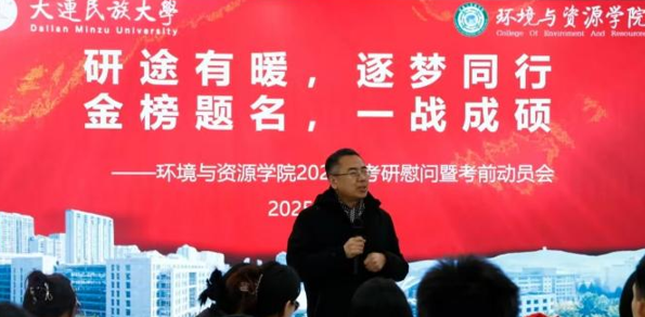时光荏苒,岁末将至,2026届全国硕士研究生招生考试的脚步日益临近。为帮助考研学子缓解考前压力,调整心理状态,坚定必胜信念,2025年12月15日,环境与资源学院举行了2026届考研暖心慰问暨考前动员会。学院领导、辅导员齐聚现场,与百余名考研学子共同迎接这一重要时刻。