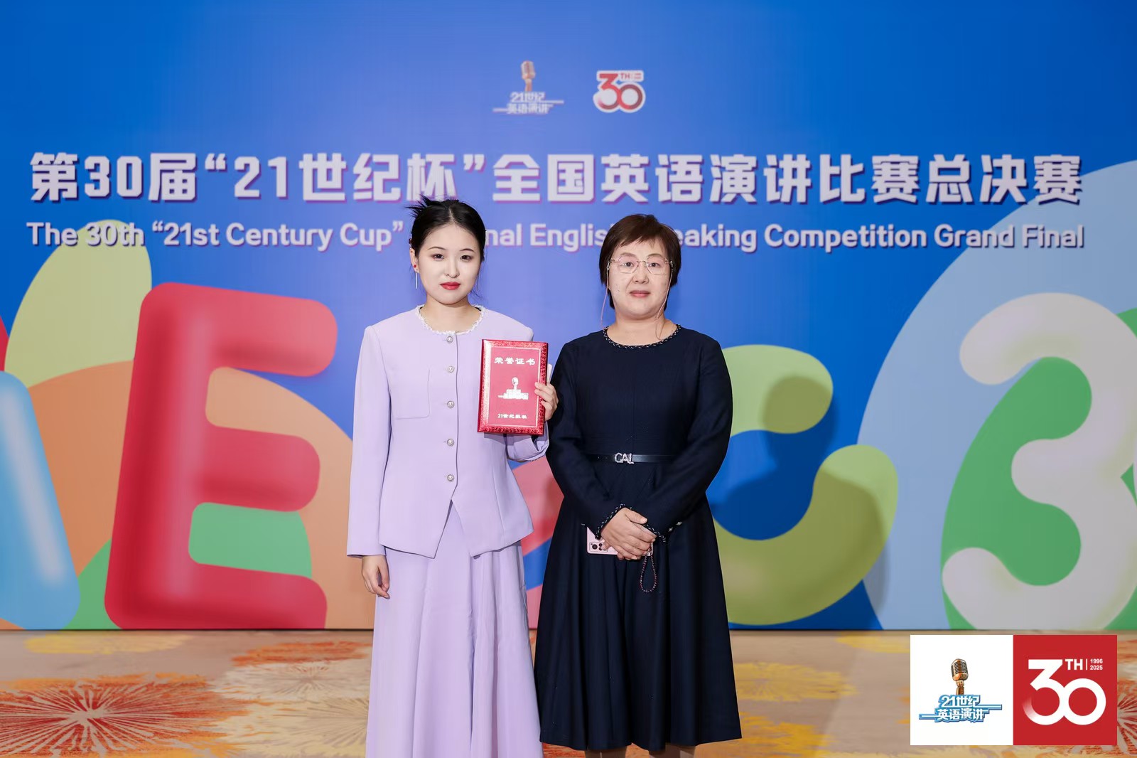 民大新闻网讯 11月12日至17日,第30届“21 世纪杯”全国英语演讲比赛全国总决赛在杭州圆满落幕。我校外国语学院2022级英语专业张育嘉荣获全国一等奖。