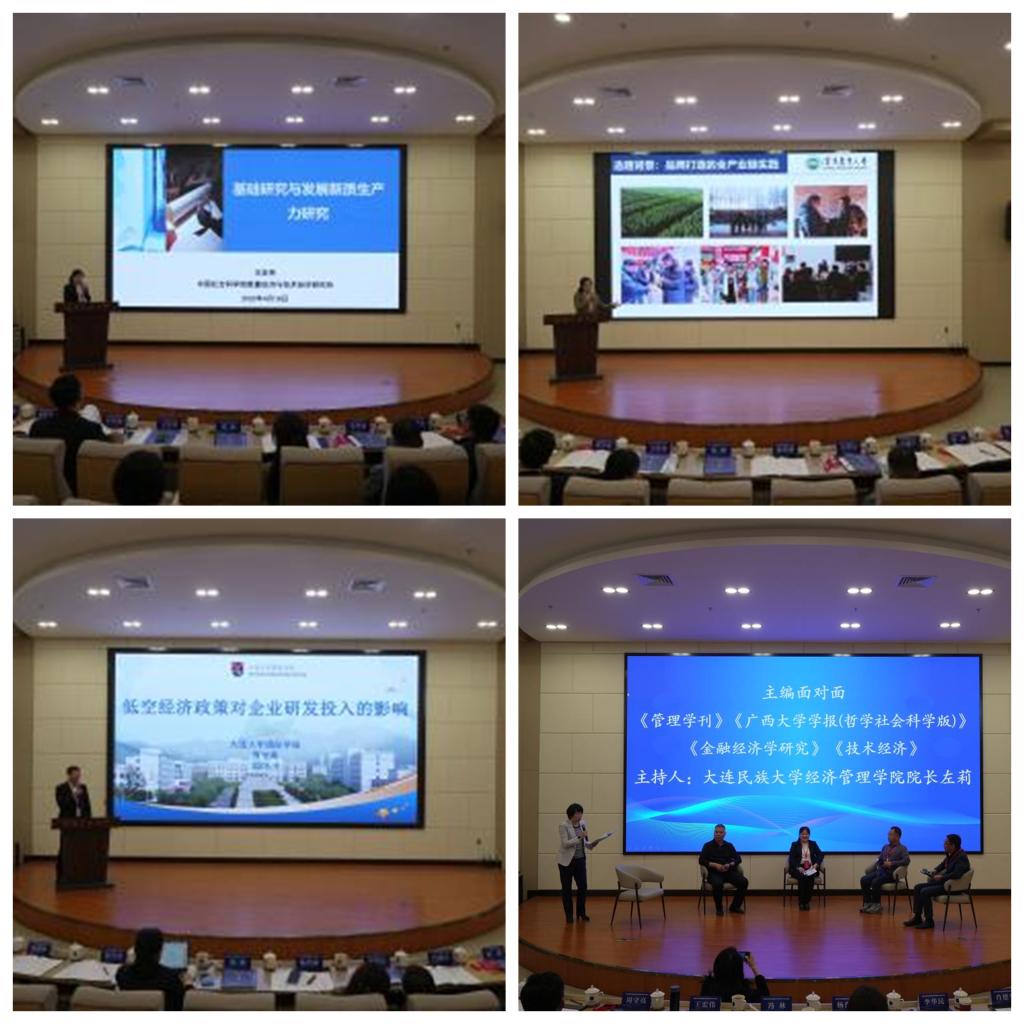 主旨报告环节,中国技术经济学会常务副理事长、中国社会科学院项目评估与战略规划研究咨询中心主任王宏伟,沈阳农业大学农业品牌研究中心主任、博士生导师杨肖丽,大连大学国际学院院长周守亮作主题报告。“主编面对面”活动中,《管理学刊》主编张跃胜、《广西大学学报(哲学社会科学版)》主编肖德生、《金融学研究》主编李华民、《技术经济》常务副主编王宏伟,围绕相关期刊学术论文的选题方向、写作规范、审稿标准等内容进行交流研讨。