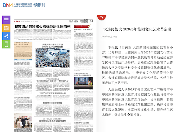 大连民族大学2025年校园文化艺术节暨铸牢中华民族共同体意识教育月将校园文化建设与铸牢中华民族共同体意识教育深度融合、协同推进,将组织开展21项主体活动和37项社团活动,构建校园美育实践立体矩阵,丰富校园文化生活,提升学生艺术修养,促进学生全面发展。