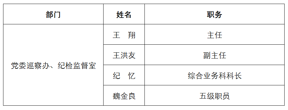 党委巡察办、纪检监督室