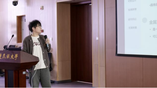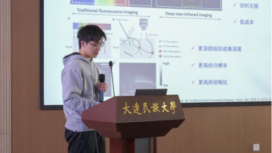 在科研成果汇报中,马浩迪同学做了题为“刺激相应型纳米硒药物递送系统的构建及抗肿瘤活性研究”的汇报,展示了学院新购置小动物活体光学成像系统的应用情况,这一设备能够直观地看到药物在小鼠体内的分布和作用过程,这为药物研究和开发提供了新的研究手段;张珈旗同学的“基于AuNPs/PCZIF-8-ZnO的电化学/光电化学传感器在AFB1检测中的应用”报告,讲述了一种在检测AFB1方面表现出色的传感器技术;姜亚枫同学通过“双功能MOF封装钴掺杂碳点纳米酶驱动的AFB1化学发光/荧光双模式检测”,展示了如何利用纳米酶的特性来实现对食品中常见毒素AFB1的快速、准确检测;信雨林同学介绍了“玉米根系简化细菌群落的定量与其生物防治效果的评价方法”,通过深入研究玉米根系的微生物群落,提出了一种新的定量方法,并探讨了这些微生物群落对农作物病害的生物防治效果;张座铭同学讲解了“一种用于肿瘤检测的NIR-II荧光检测技术”的原理和优势,并通过一系列实验结果展示了其在肿瘤早期诊断中的巨大潜力。