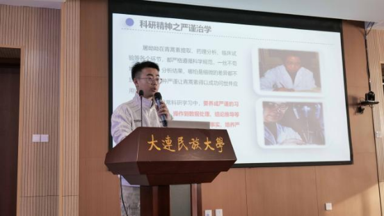 会议第一阶段,各位汇报人讲述了四位科学家感人事迹和科研贡献。在他们身上所展现的精神力量是我们生科人科研信念的灯塔,指引我们不断前进,勇攀科学的高峰。金麟、李腾飞、张月阳、马铭辰4位同学分别以“雪域高原播种者”、“一株济世草,一颗报国心”、“农业科学领域的灯塔”和“大国渔院士”为题,介绍了钟扬、屠呦呦、李振声、麦康森四位科学家的人生历程和科研进展。在他们的事迹中,同学们感受到了那些在艰苦环境条件下依然坚守岗位、无私奉献的科研工作者们的伟大精神,体会到了科研工作者们深厚的家国情怀以及他们为国家和人民所做出的巨大贡献,领略到了科研在国家发展中所发挥的重要作用。