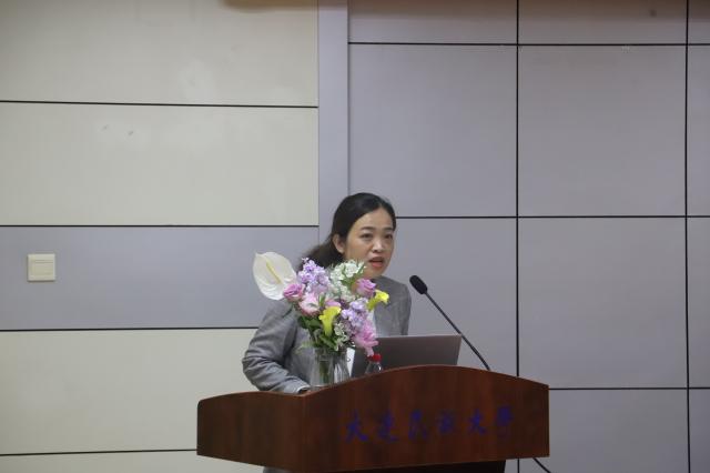 副院长尹敬爱以《理解当代中国系列课程实践教学体系与运行机制》为题,在会议上介绍了基于OBE理念的“课赛一体”实践教学运行机制。尹敬爱为文学博士,现任大连民族大学外国语学院副院长、副教授。中国韩国(朝鲜)语教育研究学会副会长,韩国国语教育学会海外理事,韩国双语学会研究理事。主持国家人文社科中华学术外译项目一项,主持省级校级教育教学改革项目10余项,发表学术论文30余篇,出版著作教材10余部。主要研究方向为翻译、语言对比、教学法等。尹敬爱副教授在会议发言中提到,“理解当代中国”系列课程把价值塑造、知识传授和能力培养融为一体,着力培养学生“讲好中国故事,传播好中国故事”的能力为课程目标,基于静态、动态、互动层面的能力培养策略,构建了“课上+课下”混合式联动实践教学体系,有效地把课前、课中,课后有机地关联起来,实现了课堂、课下实践的订单式关联,使实践教学具有很高的目的性和实效性,并且采用嵌入式评价等多元评价机制,构建了良好的教学评循环机制。基于OBE理念的“课赛一体”实践教学运行机制,以成果为导向,对课程进行反向设计,正向实施,采用课内、课外相结合,同时践行“课赛一体”模式,结合教学评, 着力培养学生实际应用外语的能力,取得了较好的成效。