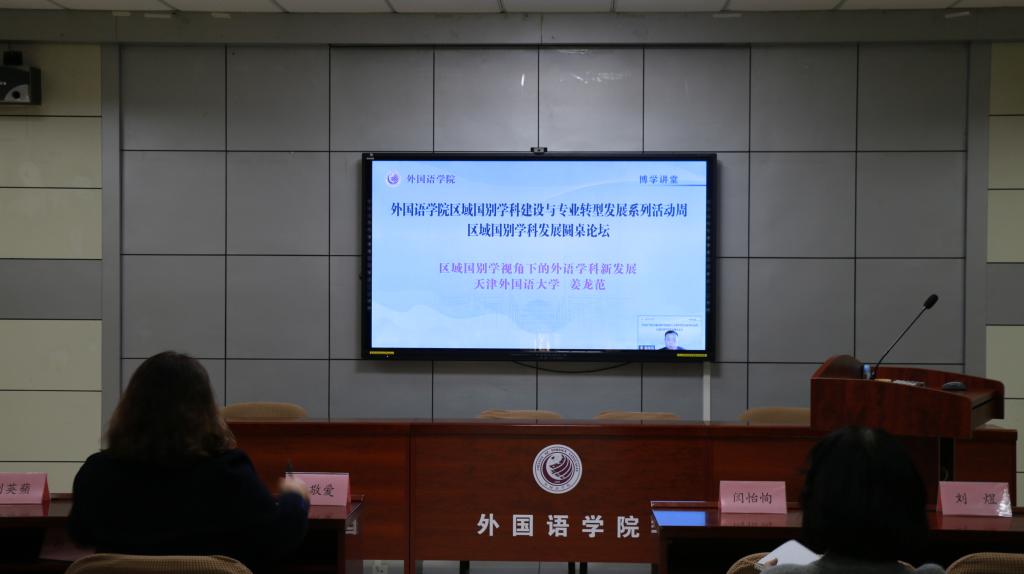 为贯彻学校部署,深入推进学院区域国别建设与专业转型,12月8日,大连民族大学外国语学院成功举办了“区域国别学科发展圆桌论坛——博学讲堂”专题报告会。本次报告特邀天津外国语大学国别和区域研究院院长姜龙范教授担任主讲嘉宾。姜龙范教授以“区域国别视角下外语学科新发展”为主题,系统阐述了区域国别学研究的内涵特征、发展趋势以及外语学科参与其中的路径与方法。