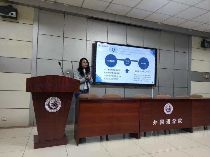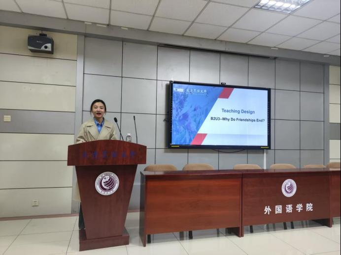 刘思洋、曹诗棋、孙雅娴三位新教师结合近 8 个月的教学实践依次说课。刘思洋老师围绕英语阅读文本,以“文本教学法+混合式教学”打造五步闭环课堂;曹诗棋老师立足学情差异,分享“分层教学”教学实践与策略;孙雅娴老师将思政元素融入课程,采用“任务驱动”提升学生的语言和思辨能力。大学外语教学研究中心、大学外语教学部全体教师和学校校级督导全程参与并进行了点评和研讨。