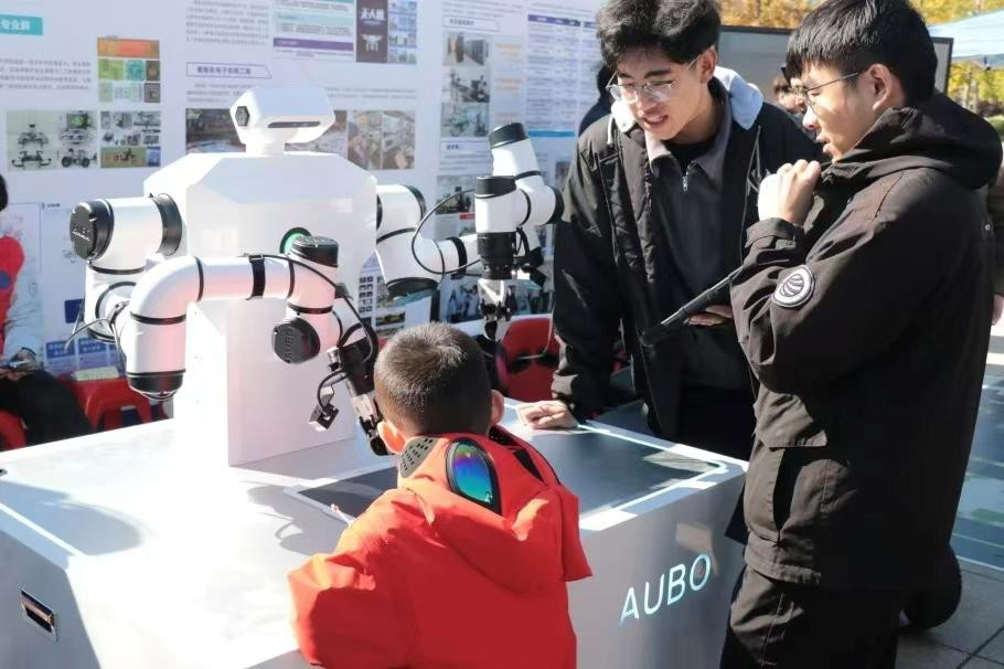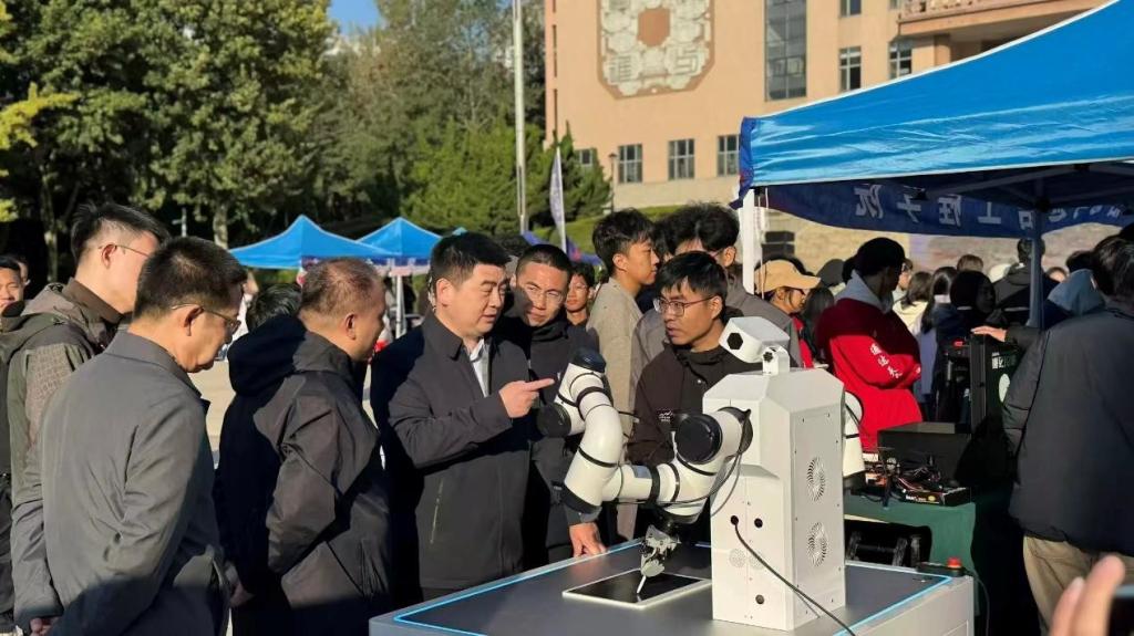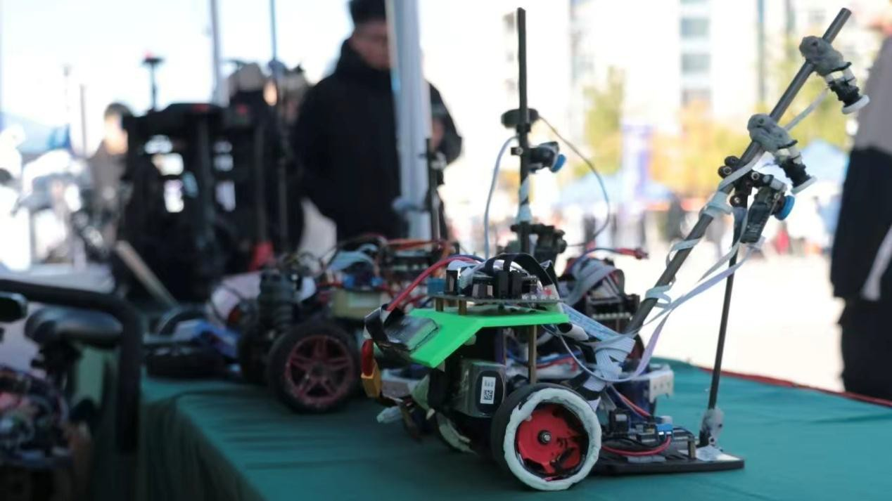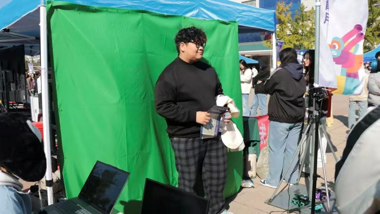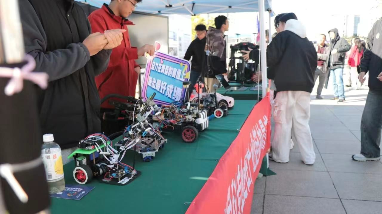 展台之上,各类机械设备错落有致,精密的结构与巧妙的设计尽显学科魅力;灵动的智能车吸引着众人目光,同学们与校外小学生们争相体验操控乐趣,在亲手操作中感受科技的神奇力量。一旁的照相区更是人气爆棚,大家定格与大连民族大学标志性建筑的美好瞬间,现场打印的照片将校园记忆与民族情怀牢牢定格。