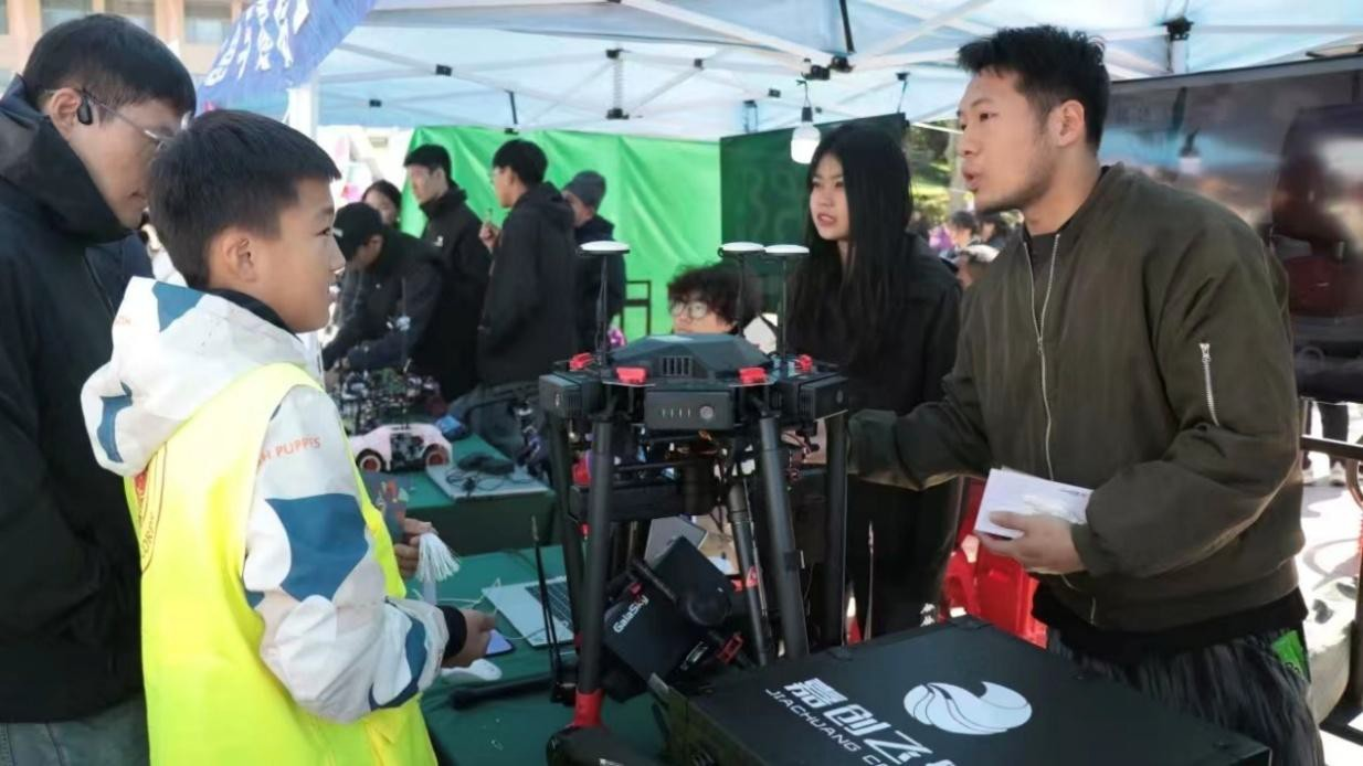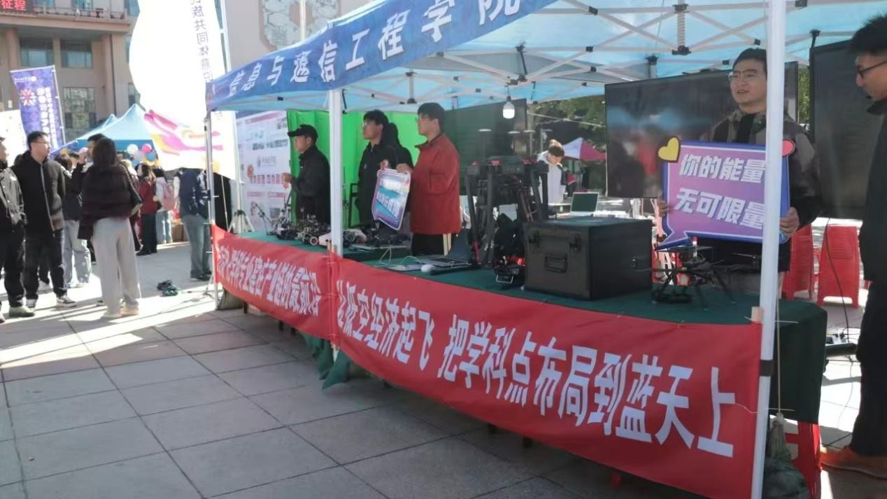 当民族同心的信念邂逅科技创新的活力,当低空经济的蓝图融入校园文化的热 潮,大连民族大学的校园里正绽放着别样的精彩。在学校举办的校园文化艺术节上,信息与通信工程学院打造的特色展台,成为全场瞩目的焦点,以实际行动诠释“铸牢中华民族共同体意识”的深刻内涵,奏响“科技强国”与“低空经济起飞,把学科点布局到蓝天上”的青春乐章。